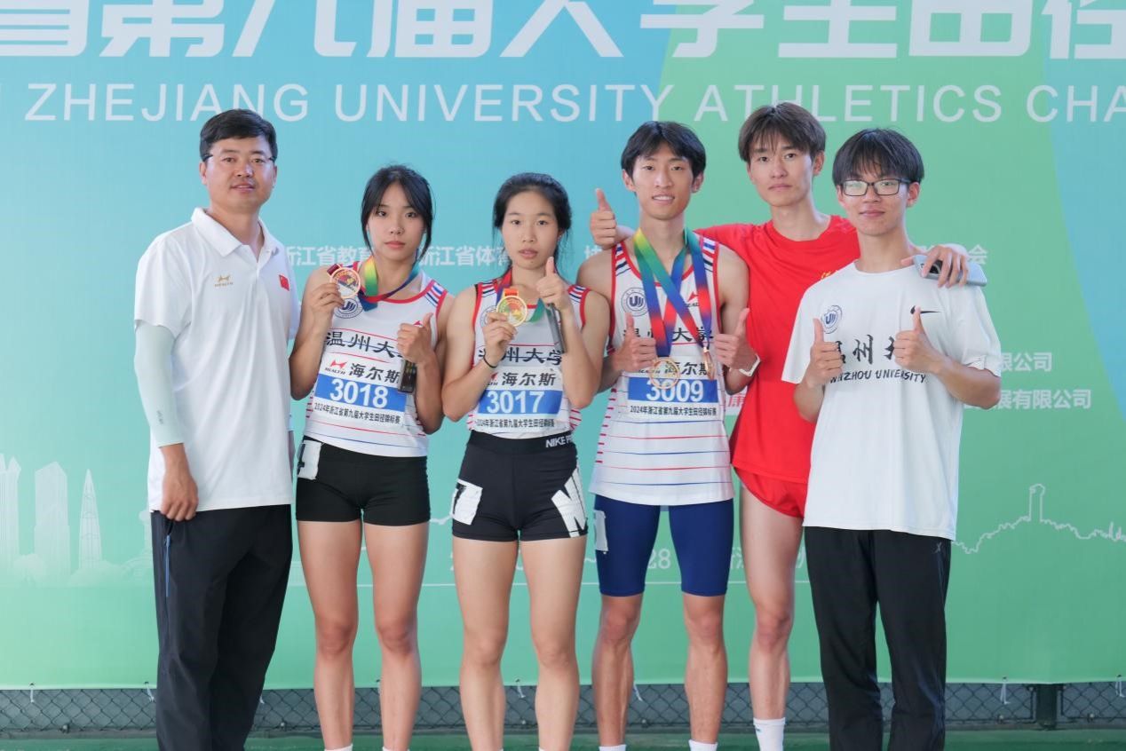 5月24—27日,2024年浙江省第九届大学生田径锦标赛在威尼斯官网举行。威尼斯官网田径健儿奋力拼搏,荣获2金、4银、5铜佳绩,1个项目打破省锦标赛纪录,队伍获体育道德风尚奖、1名教练获“优秀教练员”、5名队员获“优秀运动员”荣誉称号。