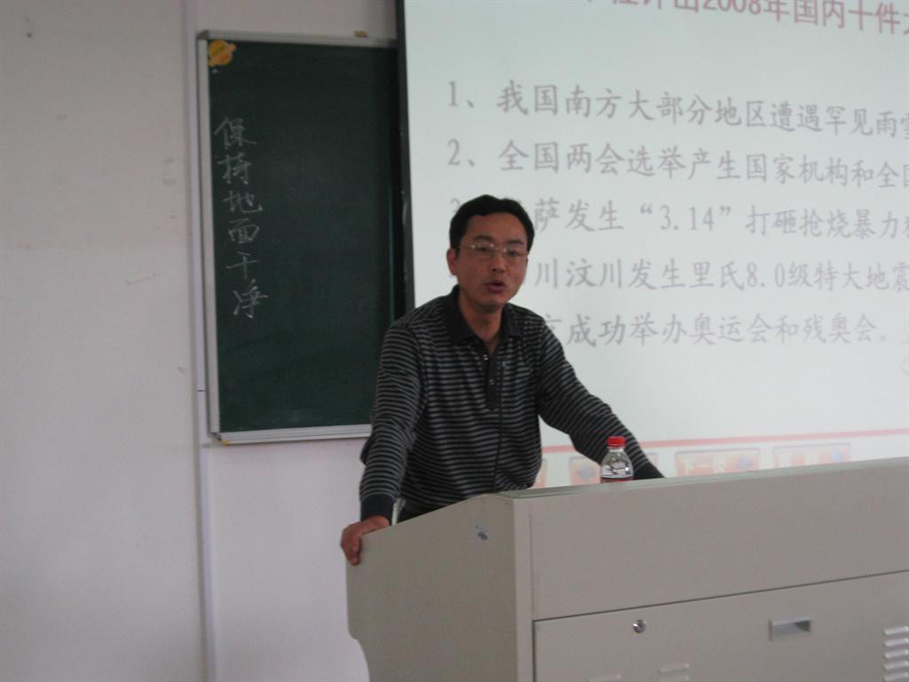 主讲老师就08年我国的大事做了简要的盘点之后,他根据当前的国际形势分析了我国的发展方向。从历史现实出发,深刻的指出了国际国内形势的深层变化和国际关系的内在联系。老师深切且生动的演讲让大家更深入的了解了风云变幻的国际形势以及我们中国在世界大家族中的发展趋势。