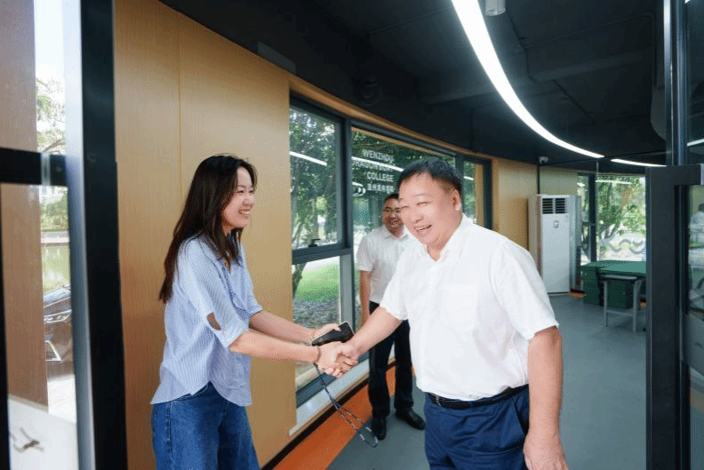 9月9日,在第40个教师节即将到来之际,校长赵敏一行到温州龙舟学院亲切慰问我院教师代表朱敏圆,向辛勤耕耘在教育一线的教师代表们送上了诚挚的慰问和祝福。