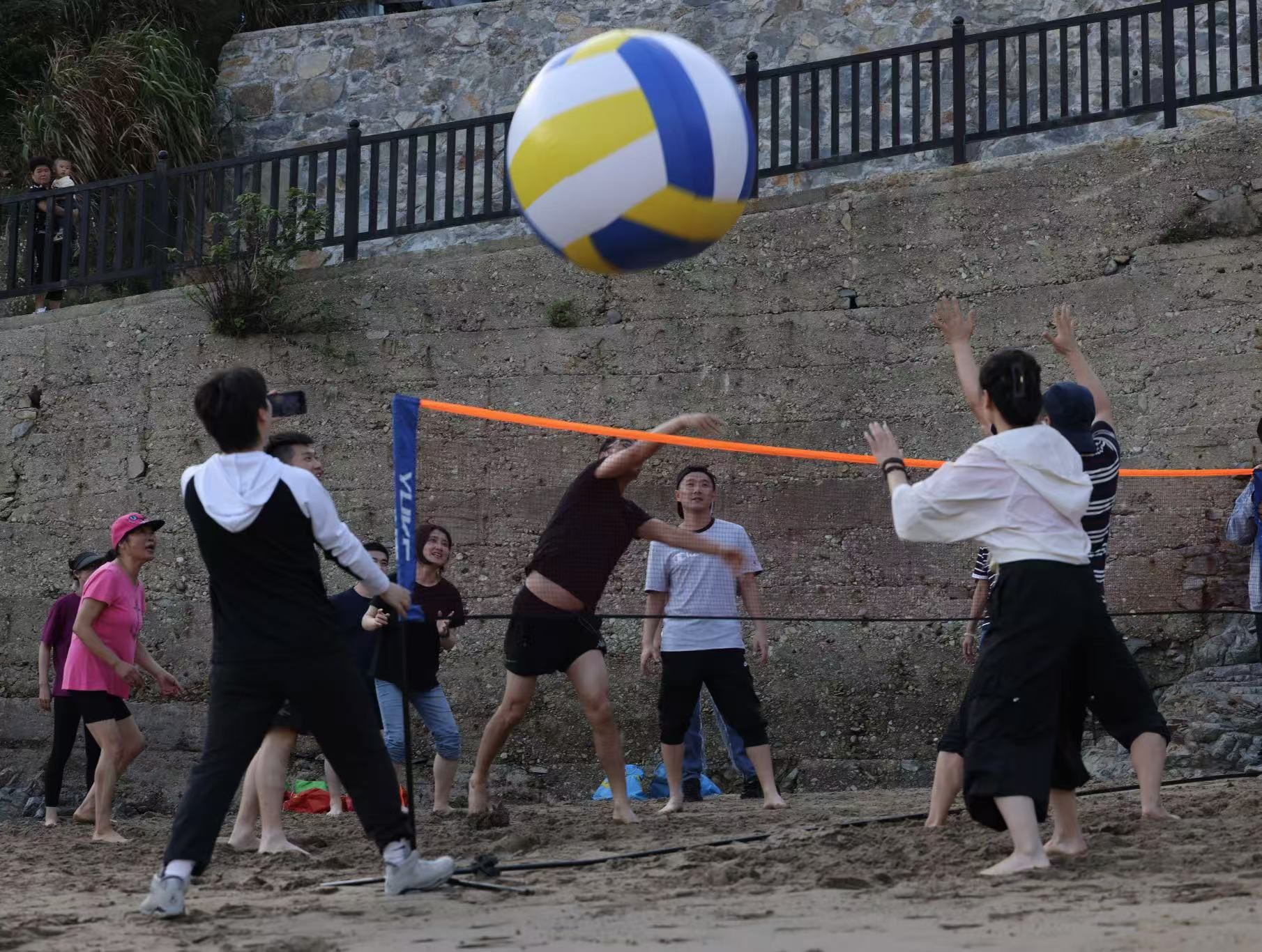 体健学院教工党员与正岙村村委进行了座谈交流,了解了正岙村建设和发展情况,商议共建沙滩排球培训基地、举办定向运动赛事和推广“海霞拳”等事宜。座谈会结束后,教工党员实地考察了正岙村滩涂沙滩运动场地和特色运动项目,并组织了沙滩趣味运动。
