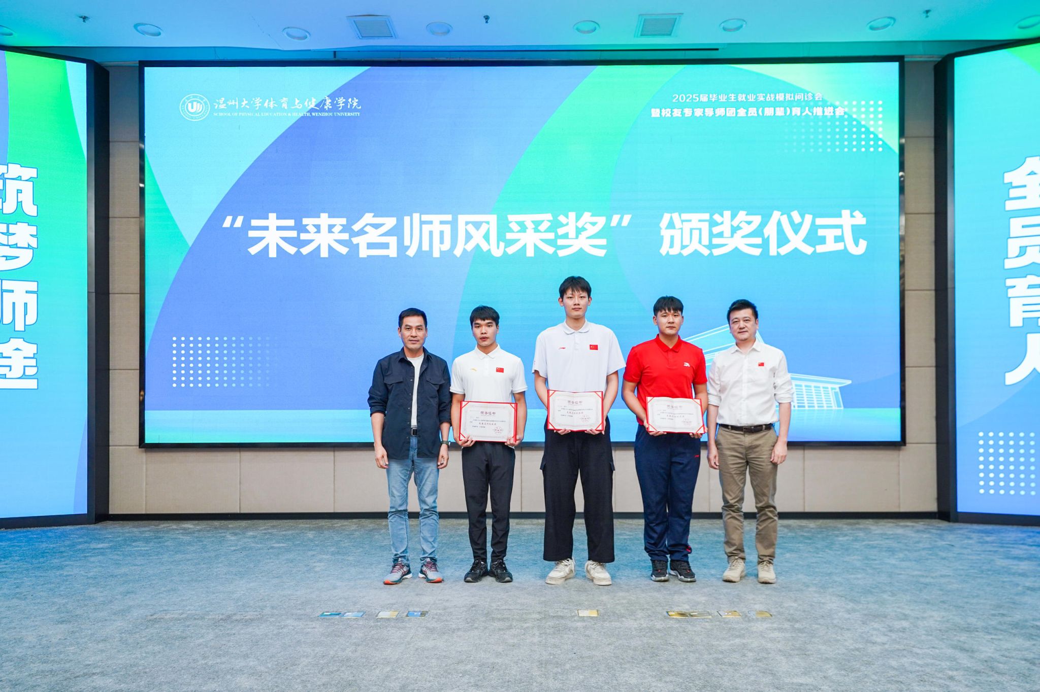 就业实战模拟现场,既是师范生们展现个人风采的大舞台,更是蓄力赋能面向未来职场的演习场。根据同学们的现场表现,经过专家导师们集体评审,矫镇红为单林倩,金睿昕,姚盛杰同学颁发“未来名师潜力奖”。钱勇、范定权为丁家辉,黄京,苏鸿博同学颁发“未来名师风采奖”。