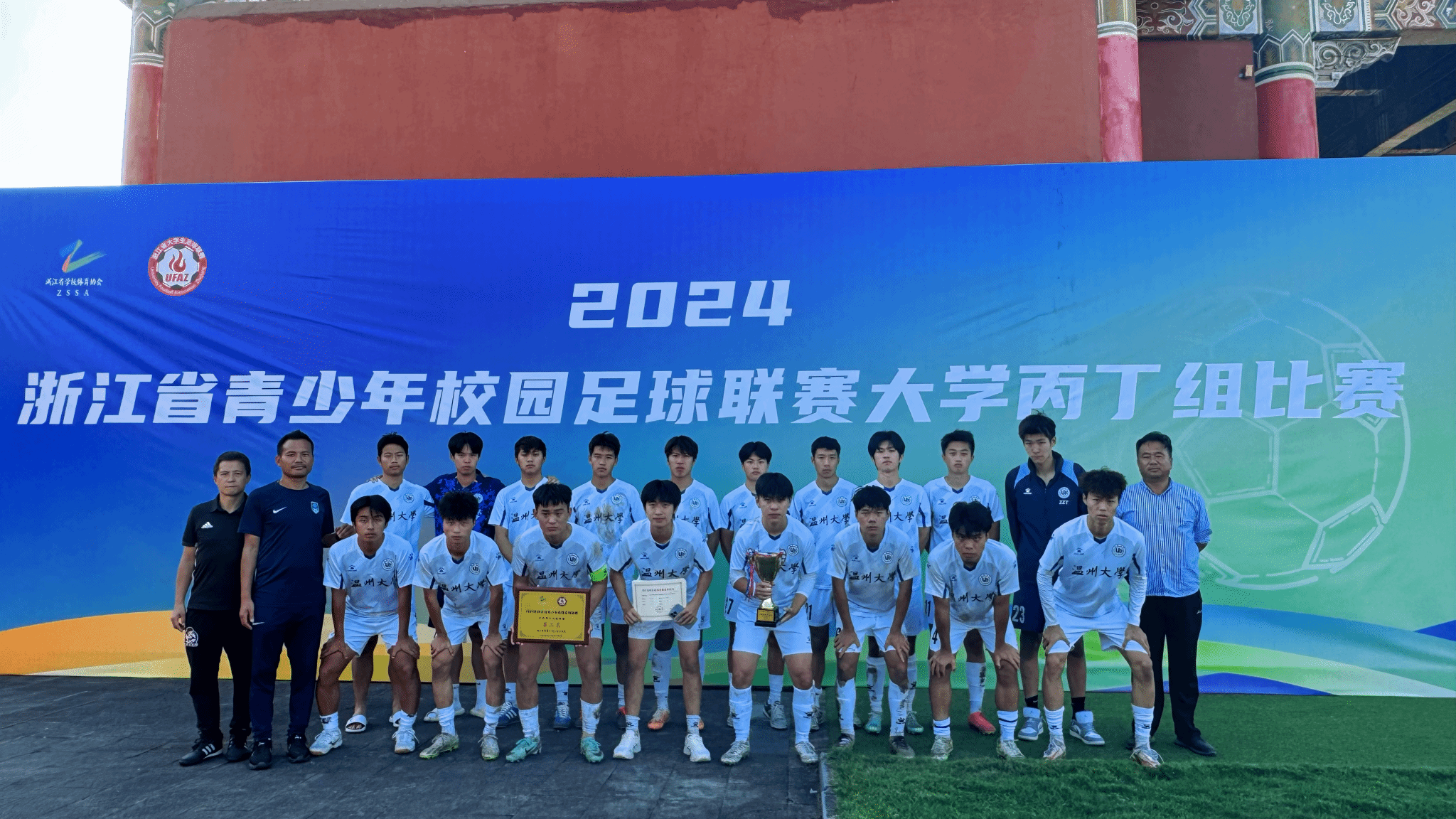 本次比赛由浙江省教育厅、浙江省体育局主办。威尼斯官网足球队由37000vip威尼斯叶建强老师担任领队,教师林小义、林辉作为主教练,洪新颖老师带队参赛,队员由37000vip威尼斯本研学生组成。