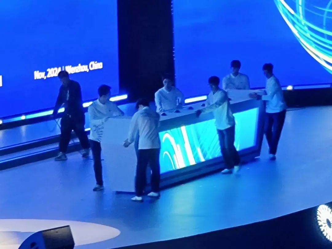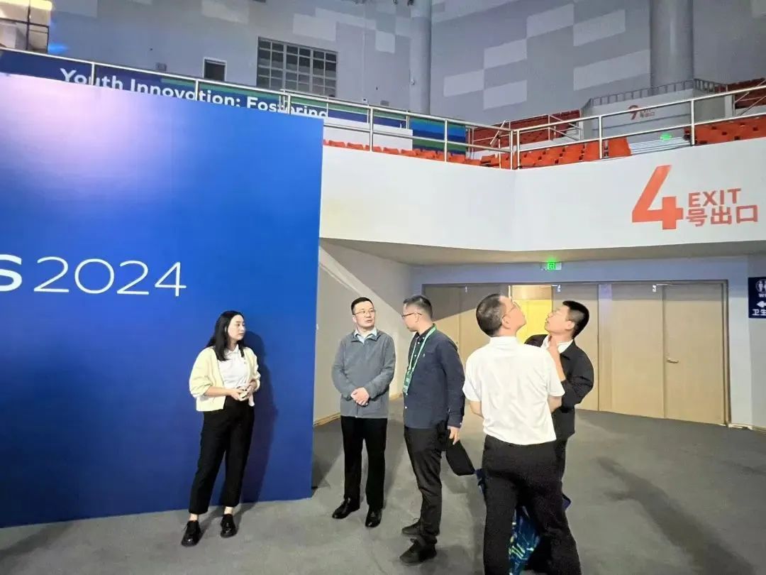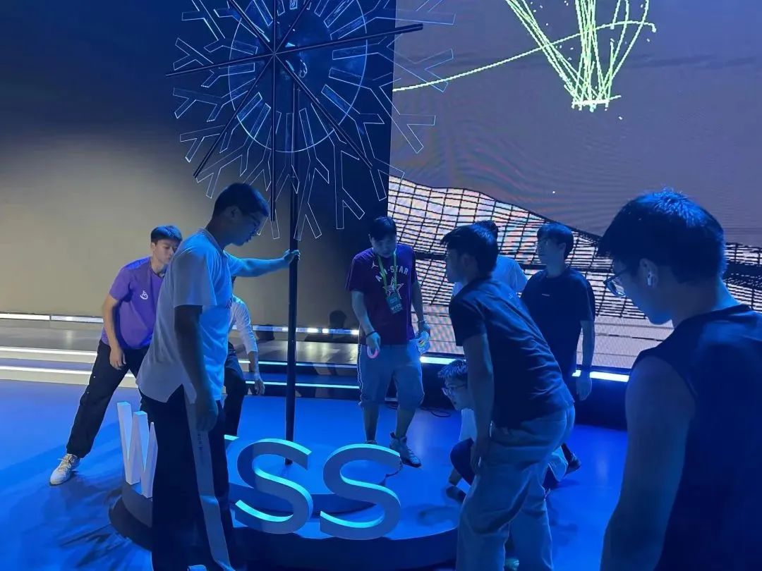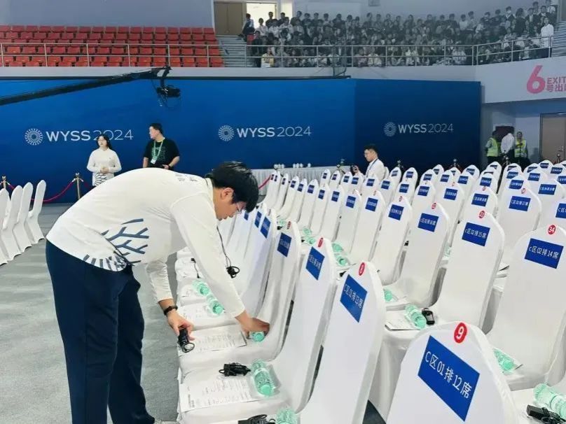 本次青科会我院由23体研章宗旭等学生为代表作为后台组成员,负责彩排演练、物资搬运、同传摆放等,他们积极配合工作人员,进行物资搬运和会场布置,并在大会过程中负责舞台道具相关工作,向青科会展示了我院学生青春与活力。他们对所有道具了然于心,严谨把控每一个细节,紧密关注每一处操作,用心血与汗水汇聚成最完美的会议舞台。