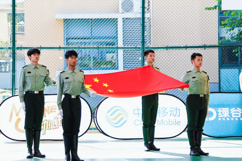 庄严国歌奏响之时,全场肃立,目光聚焦,齐唱国歌。
