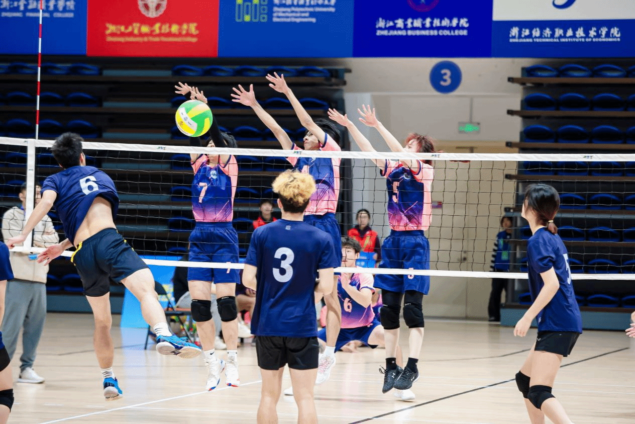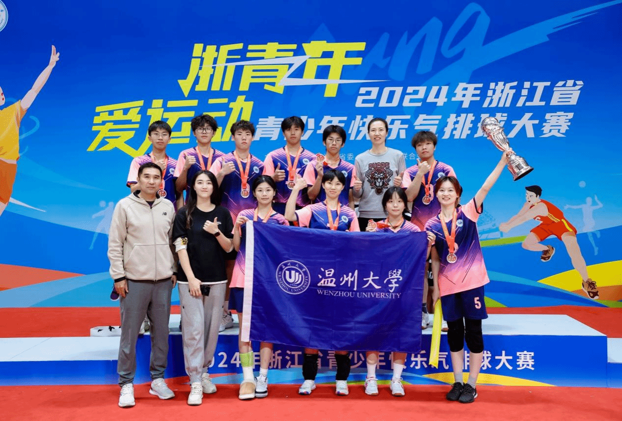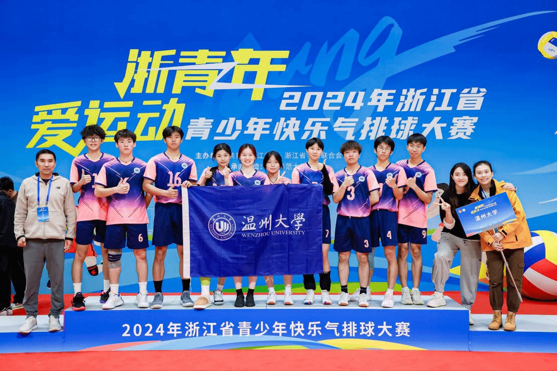 本次比赛由共青团浙江省委、浙江省学生联合会主办,来自全省本科高校35支运动队在比赛中展开激烈角逐。威尼斯官网气排球队由37000vip威尼斯教师周佳莼担任领队、李鹤洲担任主教练、孙萌担任助理教练。队员由全校范围内10名学生组成。