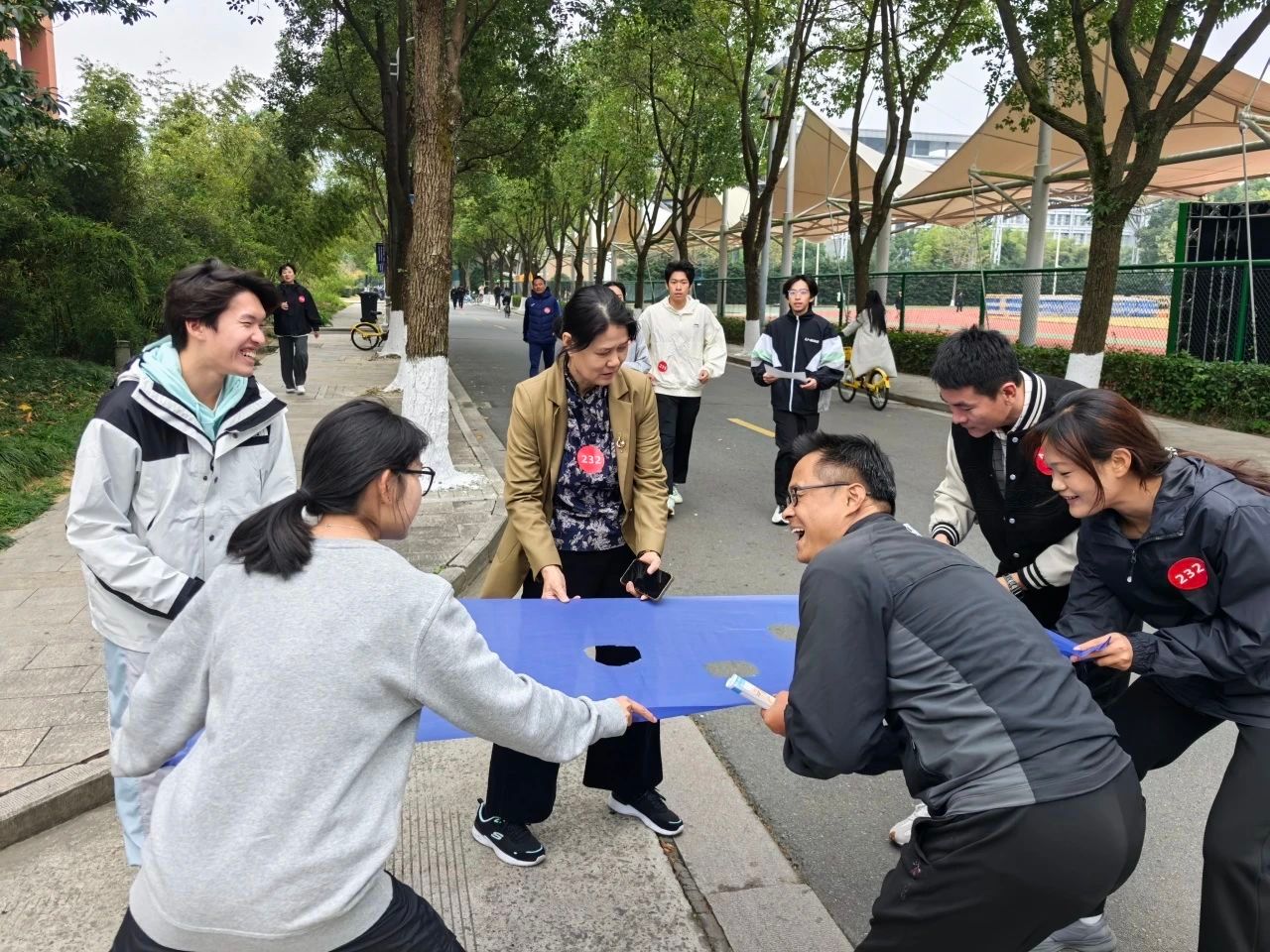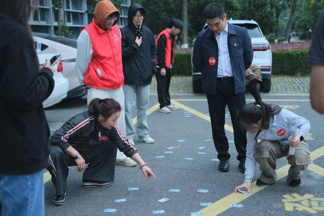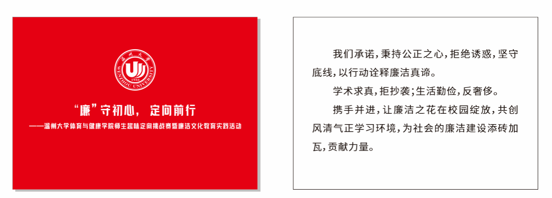 活动采用计时积分定向的形式进行,不包含终点在内总共设置十个打卡点,分别为六个游戏点和四个问答点。从起点出发开始计时,完成九个打卡点位,回到终点打卡。每支队伍由我院三名学生(有男有女)和三名老师组成。参赛队员在体院门口集合依次出发,前往打卡点进行廉洁知识竞答和游戏活动。