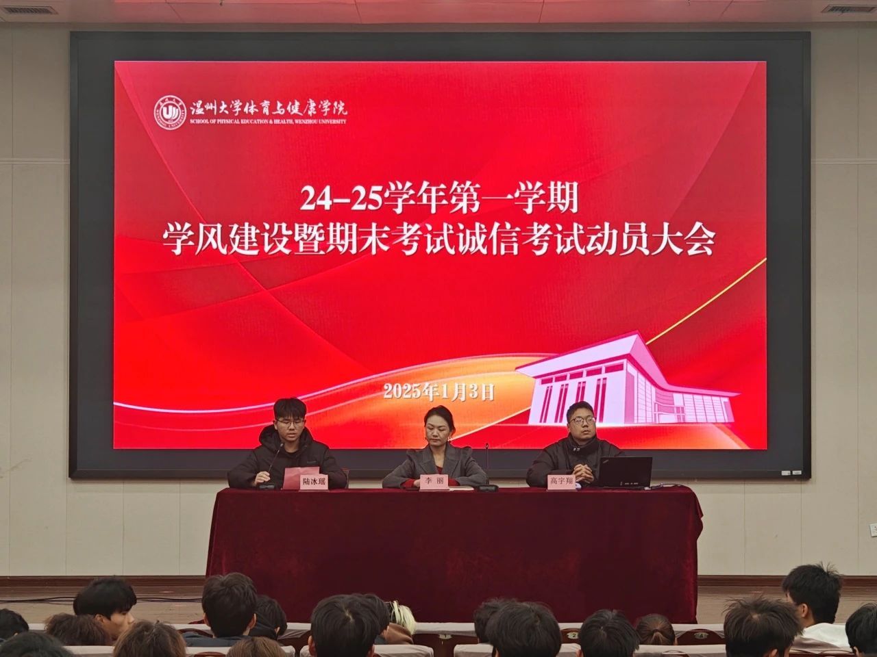 为进一步增强学生诚信意识,引导学生自觉遵守考试纪律,确保本学期各项考试工作顺利进行。学院在北校区信息楼报告厅召开本学期学风建设暨期末考试诚信考试动员大会。学院党委副书记李丽、院学工办辅导员高宇翔、陆冰瑶以及2024级本研学生及其他年级学生代表参与本次大会。