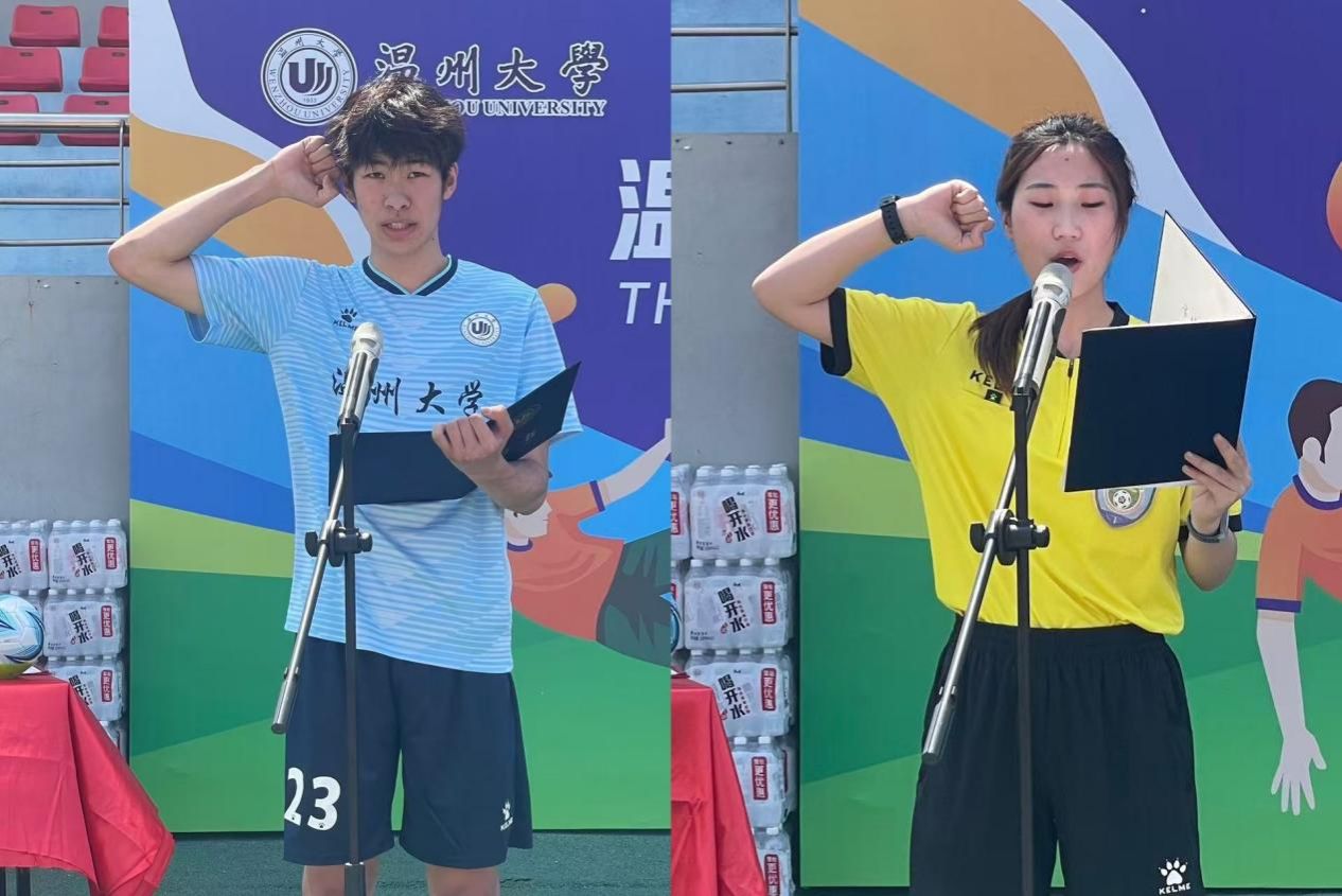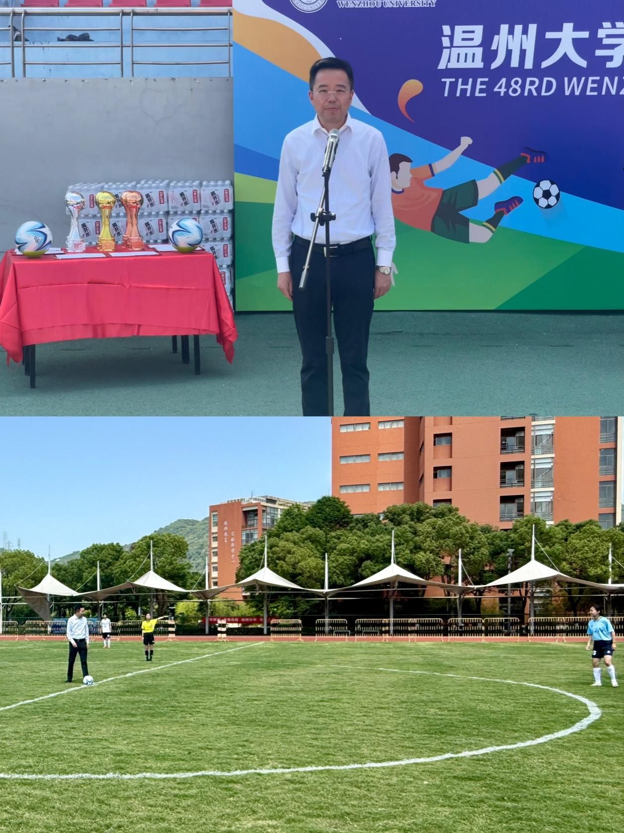 温大37000vip威尼斯党委书记周德奎代表大赛组委会致辞。他指出,37000vip威尼斯不断深化“五育融合”,高度重视体育工作,近年来学校足球运动发展成果显著。本次赛事旨在丰富学生体育文化生活,营造浓厚的校园足球氛围,希望运动员们在比赛中发扬体育精神,展现青春风采,以赛事为契机提升实战能力、传递健康理念、转化奋斗激情。