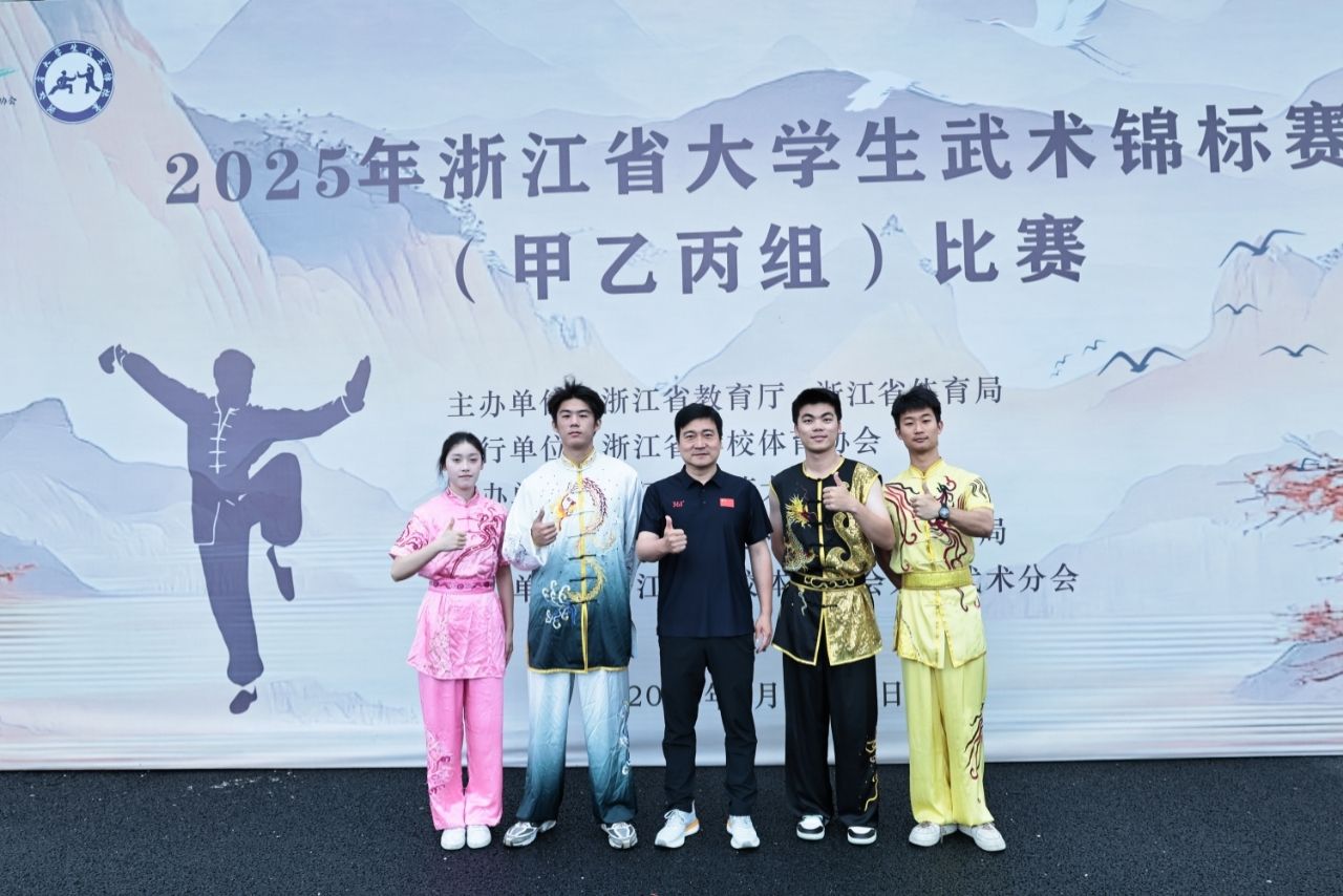 5月20日-24日,2025年浙江省大学生武术锦标赛(甲乙丙组)在嘉兴市平湖体育馆举行。威尼斯官网健儿奋勇拼搏,以武扬威,荣获1个第一名、3个第三名,1名队员获“优秀运动员”荣誉称号。