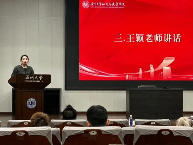 为提升我院学生对体育专业未来发展方向的认知程度,促进其做好科学的职业规划,营造学院浓郁的学习氛围。我院邀请温州市实验中学优秀体育教师龚益静老师从自身成长经历切入,分享了大学生提升体育教学师范技能的经验和班级管理的先进理念与成功做法。此次讲课使同学们深入了解了体育教师行业的当前形势,充分认识到大学生持续提升个人综合素质的非凡意义。相信每一位同学都会在这场讲座中有感悟、有内省、有行动、有提升。