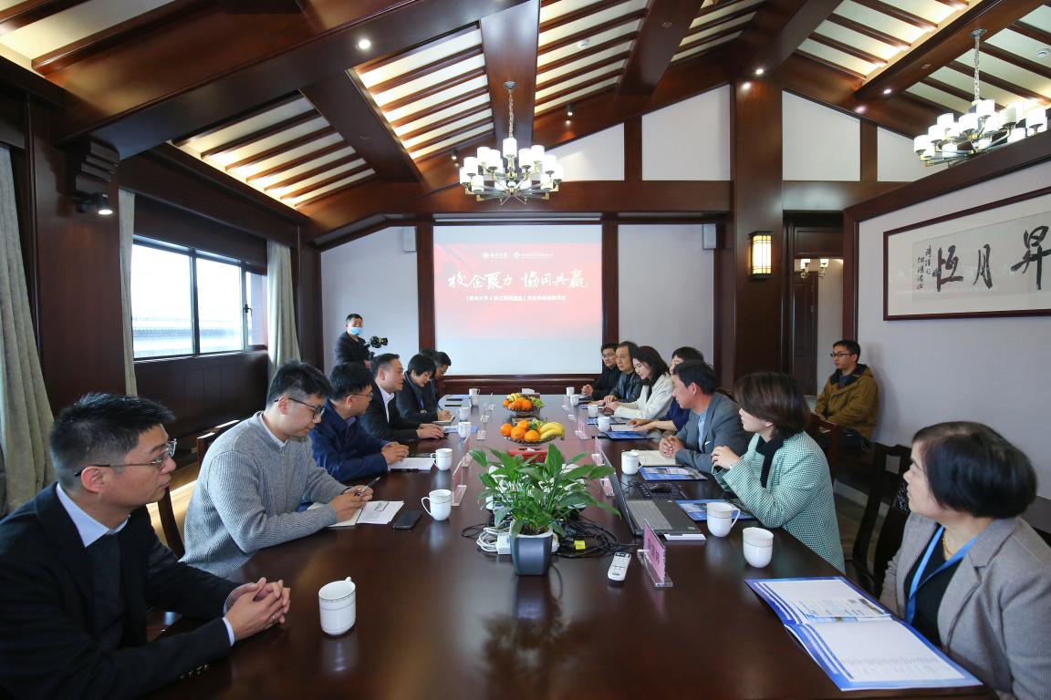 诸暨市人民代表大会副主席俞越、浙江颐和养老产业投资有限公司董事长、我院2002级校友应绍斌、诸暨慧佳颐和大健康产业管理有限公司董事长郦琼群等企业高管、诸暨校友代表对潘玉驹副校长一行的到来表示热烈欢迎并随后召开校友、校企交流座谈会。