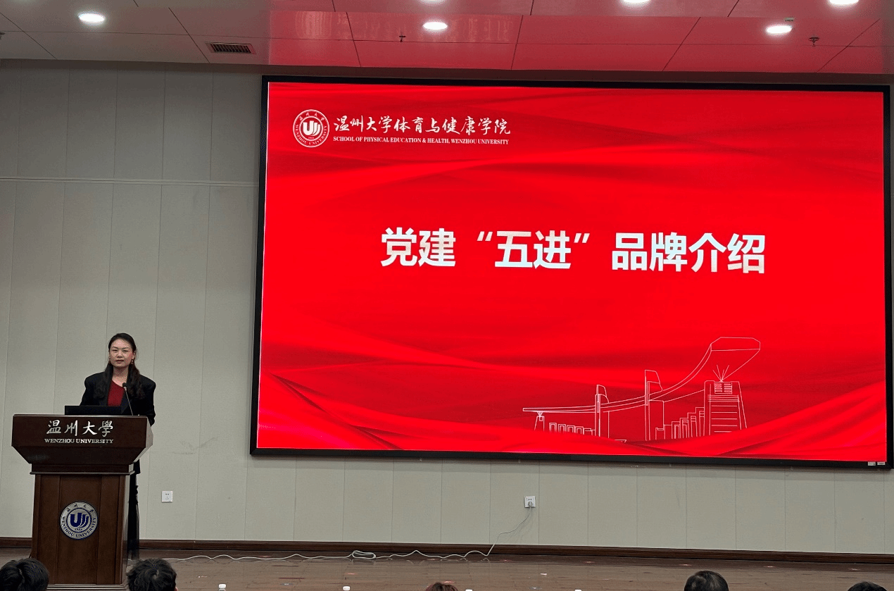 李丽对党建“五进”品牌进行介绍,为充分发挥党建引领作用,推动我院党建工作与学生工作深度融合,积极打造“体健红”党建品牌,我院从2024年开始,实施党建“五进”行动,组织我院学生党员和入党积极分子“进宿舍、进课堂、进训队、进赛事、进网络”,引导党员和入党积极分子在学风建设、服务师生、奉献社会等工作中,树立标杆。