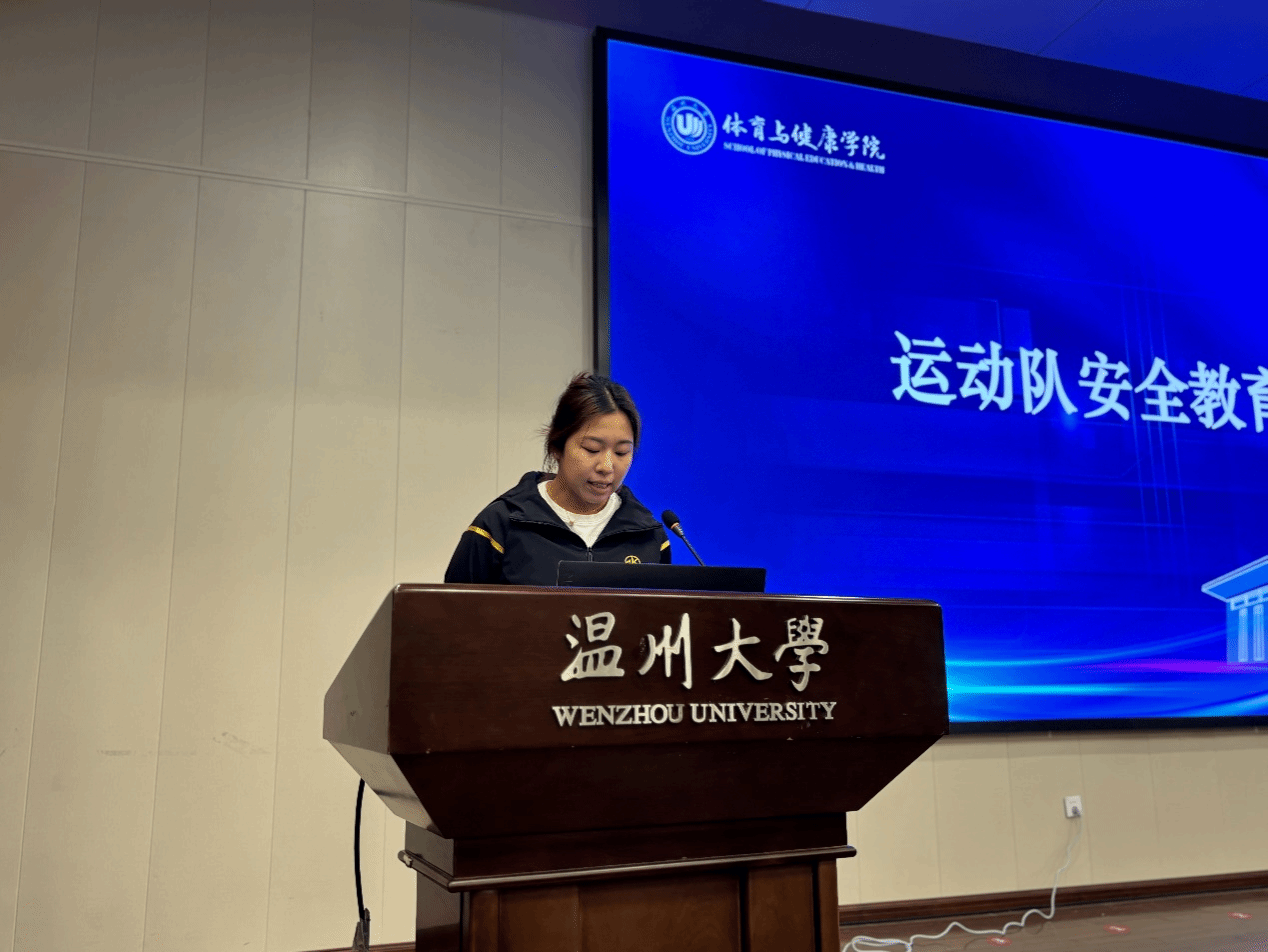 期中安全教育大会上,白梦圆教练作为训练队教练代表,进行了运动队安全教育,强调了训练安全与防护措施的重要性。