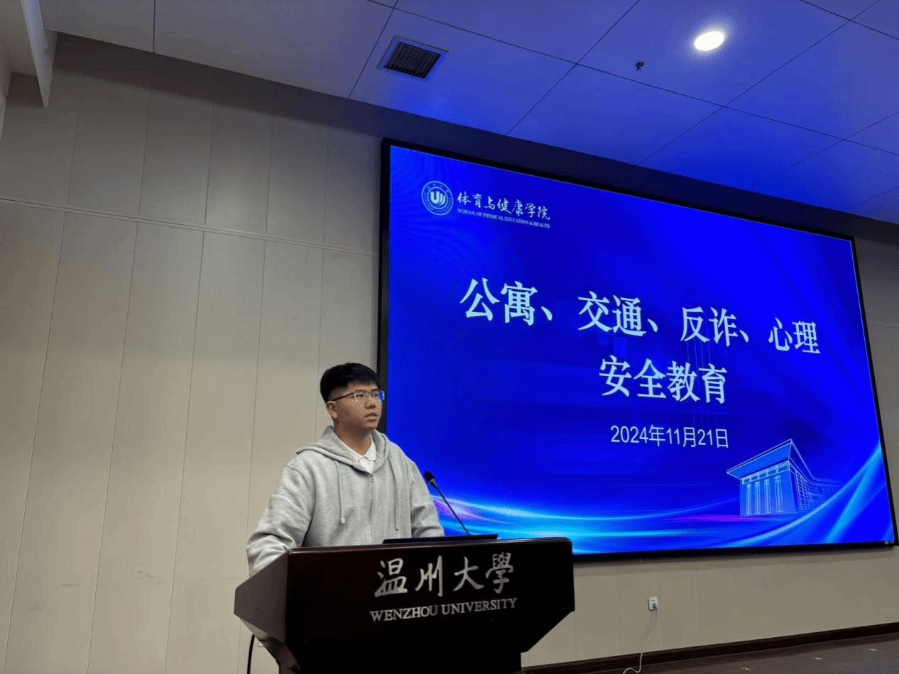 11月21日晚,我院在北校区信息楼报告厅举行党建“五进”工作推进会暨期中安全教育大会。学院副院长叶建强,党委副书记李丽,训练队教练代表白梦圆,班主任代表,全体辅导员,全体寝室长,各运动队队长,24级新生班委以及学生党员代表出席本次大会。会议由学工办副主任周佳莼主持。