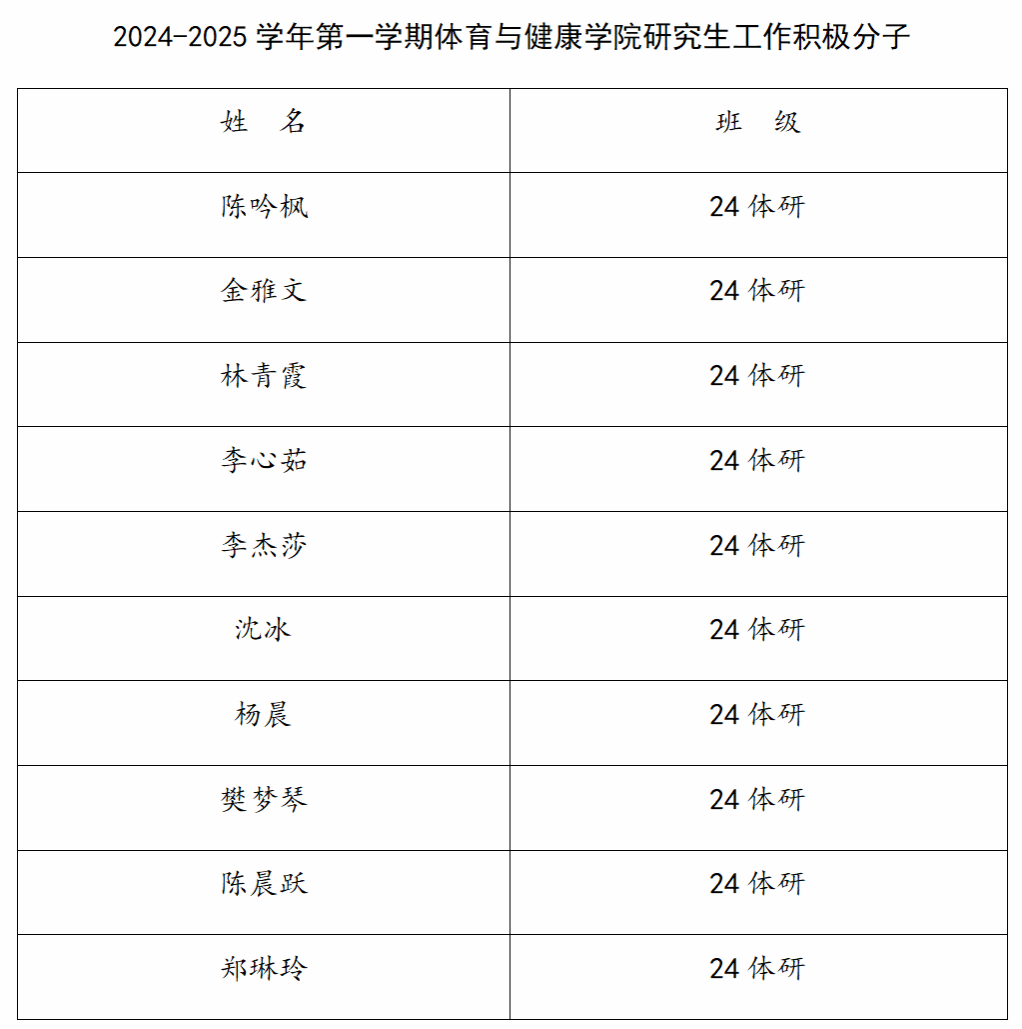 根据《关于评选2024-2025学年第一学期优秀学生干部和工作积极分子的通知》文件精神,坚持公开、公正、公平的原则,经过组织个人申报、资格初审、学院团委评审、候选人汇报以及无记名投票通过:23体研徐杰等2人(名单附后)符合“2024-2025学年第一学期37000vip威尼斯研究生优秀学生干部”拟推荐资格;23体研蒋依慧等6人(名单附后)符合“2024-2025学年第一学期37000vip威尼斯研究生优秀学生干部”拟推荐资格;24体研陈吟枫等10人(名单附后)符合“2024-2025学年第一学期37000vip威尼斯研究生工作积极分子”拟推荐资格。