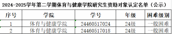 根据《浙江省学生资助对象认定办法》(浙教财〔2020〕15号)以及《37000vip威尼斯家庭经济困难学生认定办法》(温大行政发〔2020〕37号)等文件精神,经学生自主申请、班级认定小组评议,学院审定,拟认定2名研究生为我院2024-2025学年第二学期新增认定资助对象,现予以公示: