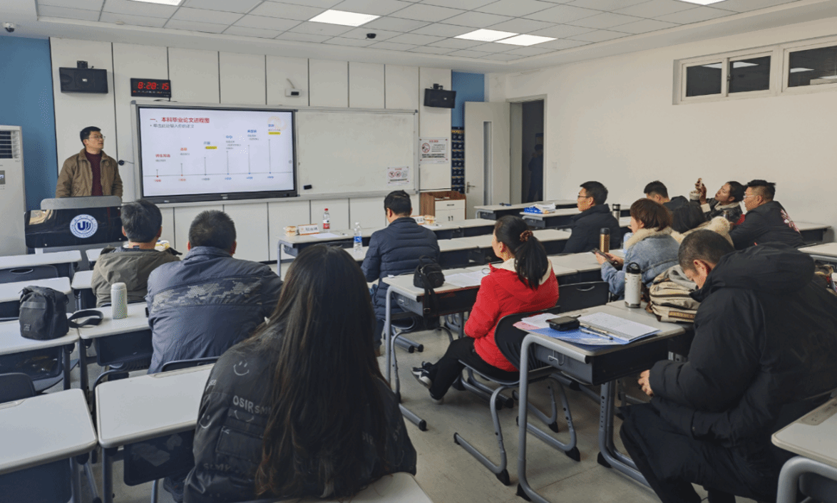 副院长赵海波做动员讲话。他强调毕业论文是学生步入职业生涯前的重要学术训练,是培养学生学术研究能力、独立思考和批判精神的重要环节,并指出学院启动本科毕业论文开题报告是学院迎接本科教育教学审核评估工作,聚焦专业人才培养质量的重要举措,具有重大意义并将产生重要影响;希望评议组态度明确、意见具体,多提问题和改进建议,将论文指导相关工作形成有效闭环,后期体现持续改进的效果;希望同学们通过本次开题报告会,能够在老师的精心指导下,进一步深入思考,明确研究方向,为顺利撰写并完成毕业论文奠定坚实的前期基础。